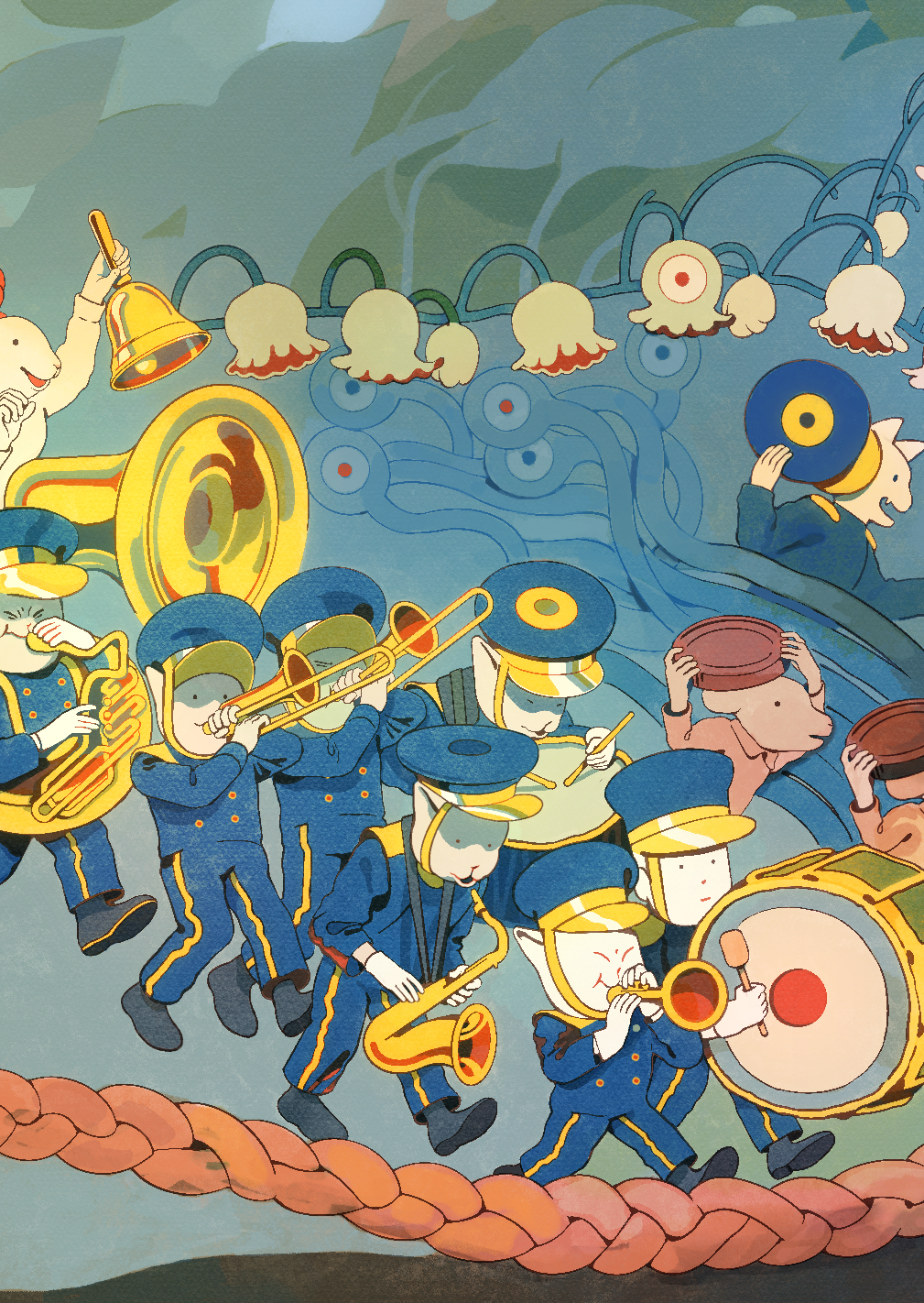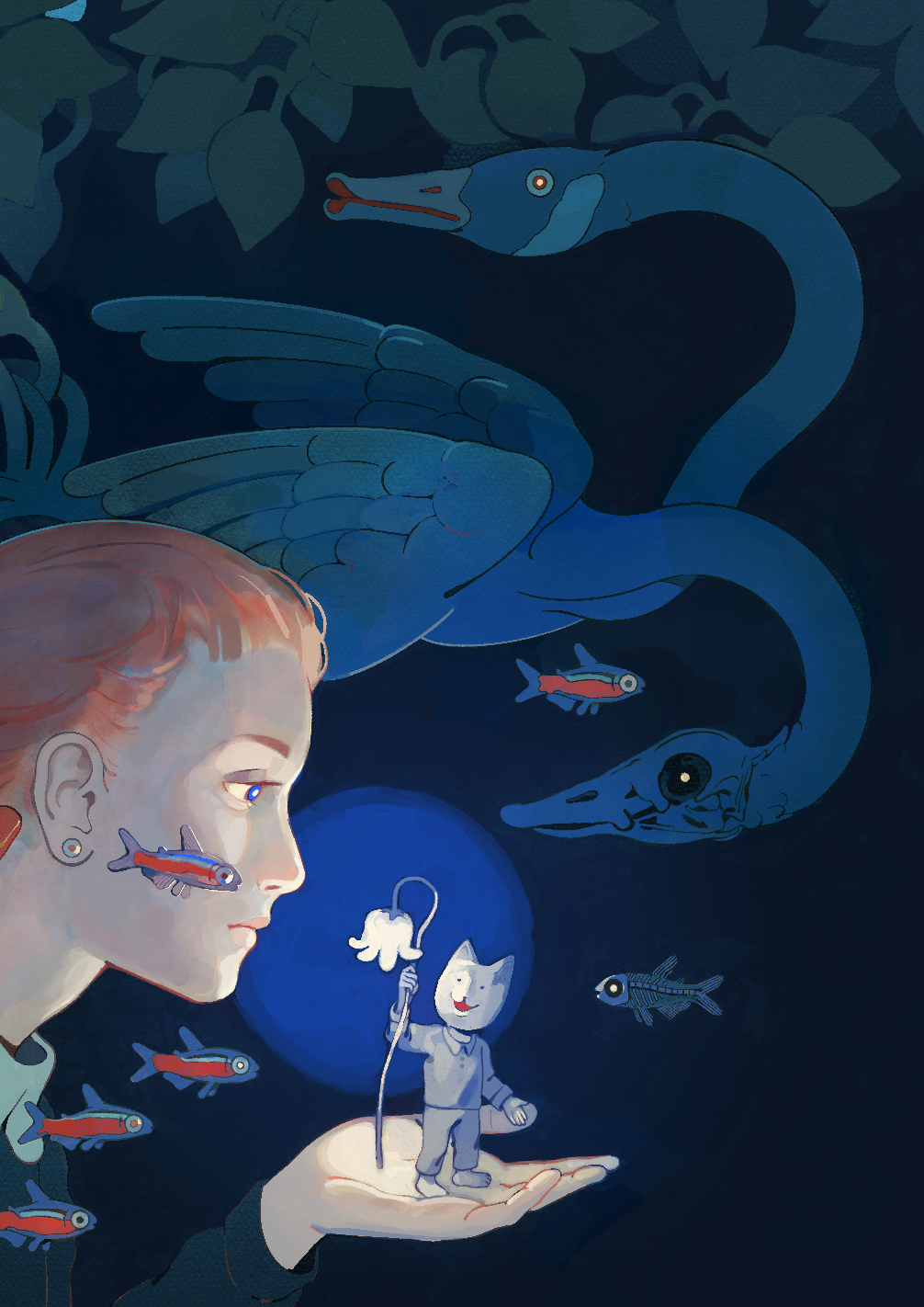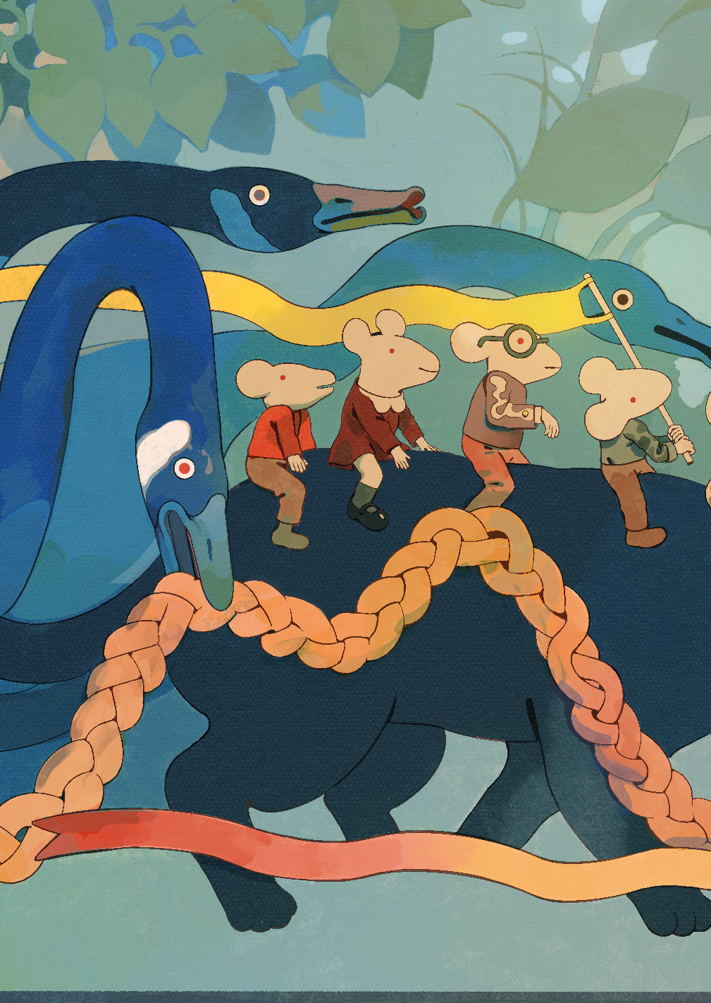 A seven page accordion-book narrative exploring the idea of an inner journey, visually represented with a cacophony of characters and creatures.