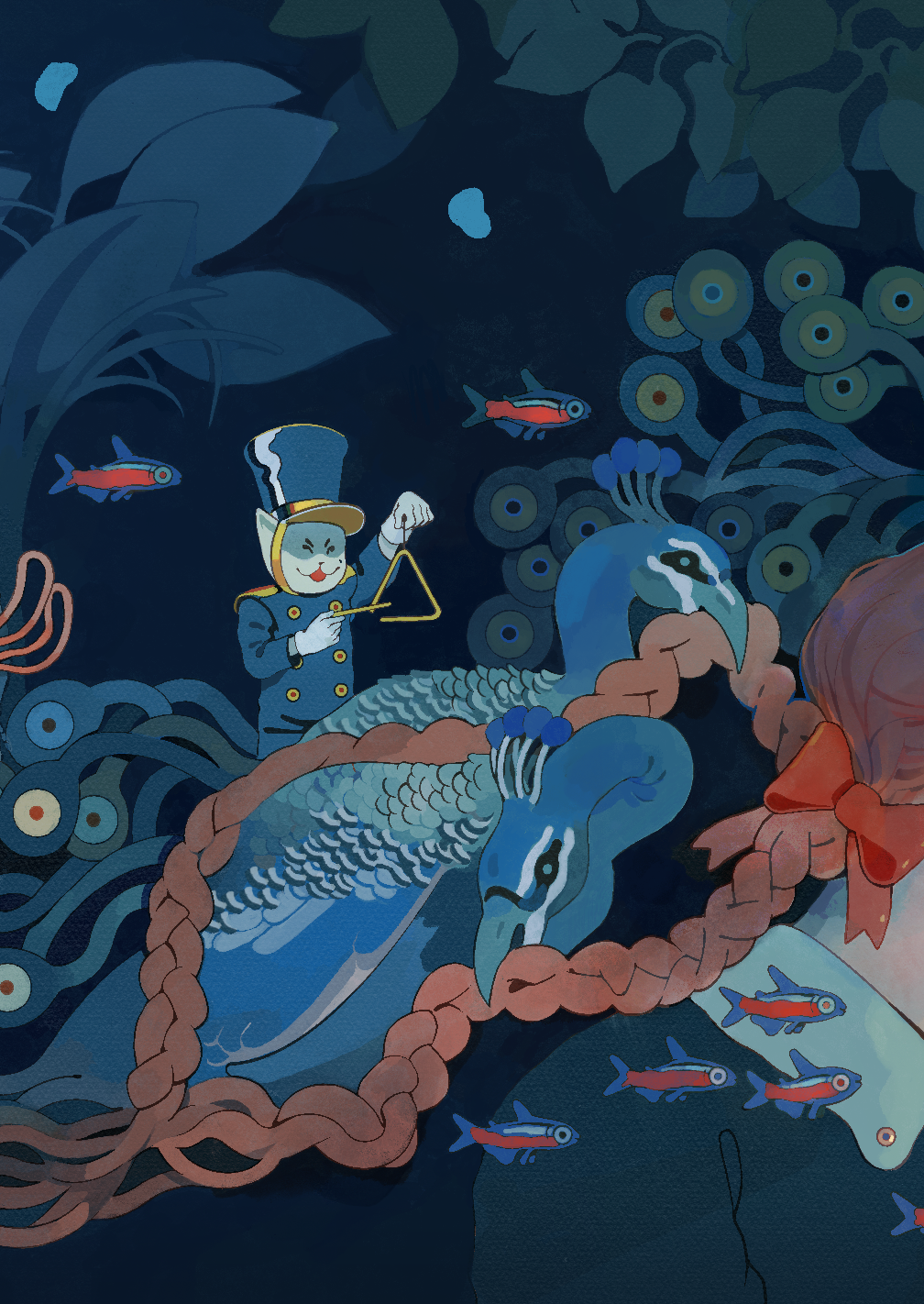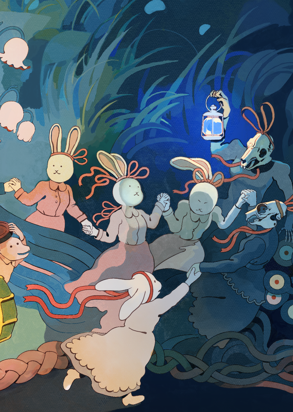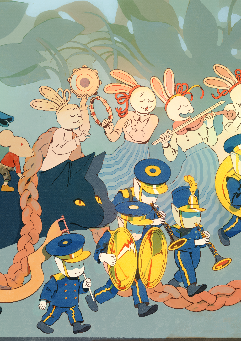 A seven page accordion-book narrative exploring the idea of an inner journey, visually represented with a cacophony of characters and creatures.